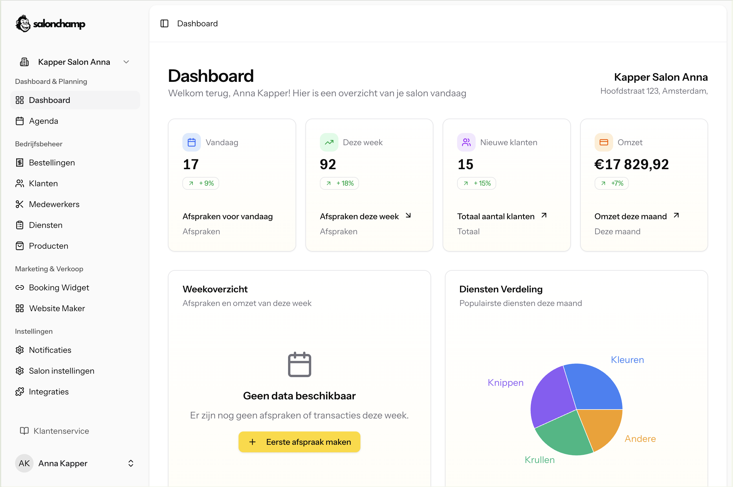 Ik heb al meerdere systemen geprobeerd, maar Salonchamp is de eerste waar echt aan alles gedacht is. Van personeelsplanning tot voorraadbeheer, het zit er gewoon in. En wat ik vooral top vind: mijn medewerkers kunnen makkelijk hun eigen agenda beheren. Het voelt alsof dit systeem écht voor salons is gemaakt.